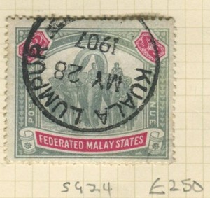 MALAYA PAHANG 1891 2c ON 24c GREEN TYPE 5 SG7 ORIGINAL GUM CAT £300
