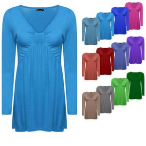 WOMENS LADIES LONG SLEEVE STRETCH PLAIN ROUND SCOOP NECK T SHIRT TOP ASSORTED