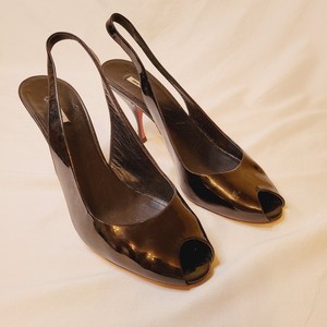 Miu Miu black patent leather open toe slingback heels size 6.5