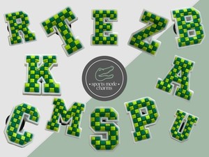 Green Checkered Letters - Charms for Shoes Clogs Sandal - Alphabet Initials ABC