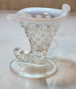 Fenton Glass White Moonstone French Opalescent Hobnail Vase Ginger Jar 4" No Lid