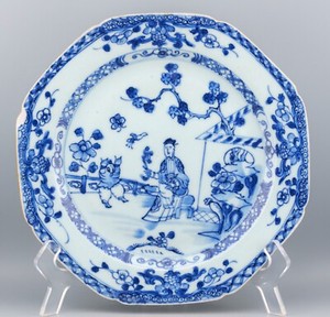 Antique Chinese Blue White Plate Porcelain Qing Qianlong Dynasty Era 18thCentury