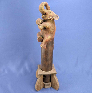 Vintage Hand-Crafted Wooden Fluted Elephant Incense Burner with Stand