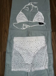Fashion Nova Icy Girl Size L Rhinestone 2 Piece White Sunsuit.