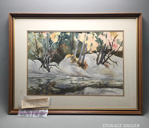 VTG Winter Stream Landscape Oil Painting Roger Brown Signed Framed 18.5 x 30.5"