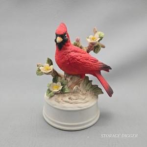 VTG Porcelain Hand Painted Red Cardinal on Branch Figurine Music Box 5.8" Tall