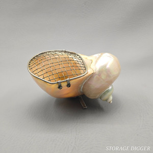 Vintage Turbo Seashell Trinket Dish/Pomander, Metal Legs and Hinged Mesh Lid