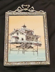 watercolor painting Thomas Point Shoal Lighthouse by K. Fuller in sterling frame