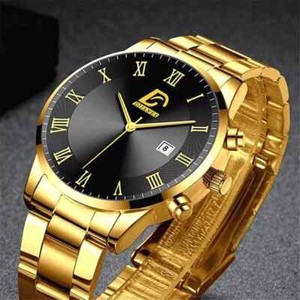Mens Watch Business Gold Stainless Steel Gents Quartz Analogue Wrist Watch Black