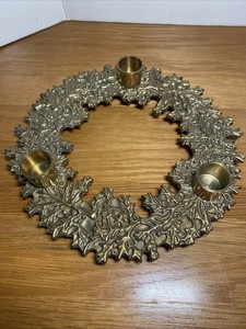 METZKE Brass Christmas 8" Solid Round Wreath 3 Candle Holder vintage 1983