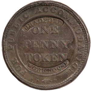 1812 BIRMINGHAM BRADFORD WORKHOUSE COUNTERMARKED ONE 1 PENNY TOKEN (#7525)