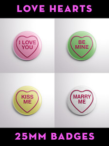 LOVE HEARTS Pin Badge Button - 25mm / 1 Inch LOVEHEARTS CANDY SWEET RETRO HEART