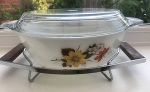 Vintage Pyrex Autumn Glory Casserole Dish with Stand - 513 - 3 Pint