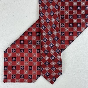 Ermenegildo Zegna Italy Men’s Tie Red Blue Plaid Jacquard Silk Tie