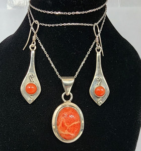 Silver Necklace & Earrings are Carnelian? & Pendant is Sponge Coral Cabochon