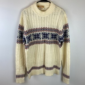 Jantzen Vintage Mens Cream Cable Knit Crewneck Sweater Size X Large Made In USA