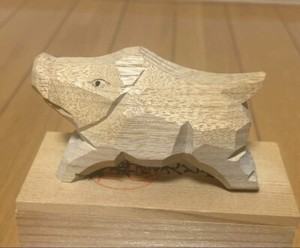Japanese Wooden Carved Zodiac Wild Boar Pig 1983