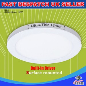 18W Round Ultra Slim 18mm Surface Mount Build-in Driver LED Ceiling Panels UK