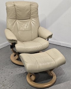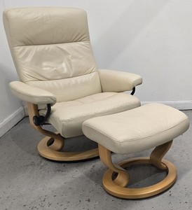 Ekornes Stressless Leather Recliner Chair & Footstool Cream 291025