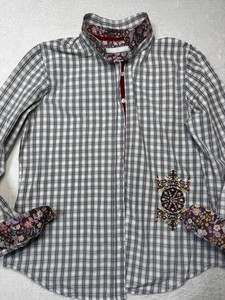 3J Workshop Johnny Was Embroidered Plaid Shirt Boho Artisan SZ M