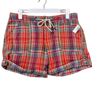 Old Navy Linen Plaid Rope Belt Tie Waist Rolled Hem Mid Rise Shorts 10 Pockets