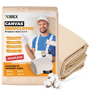 Canvas Drop Cloth (4x5) ft with Thick Texture, Sturdy Multi-Purpose Painting ...