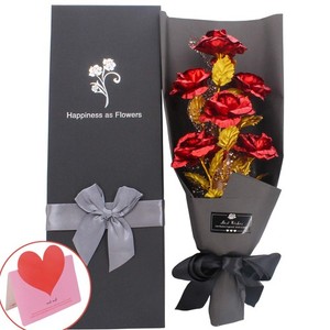 24k Gold Rose Artificial Forever Rose Bouquet, Gold Foil for Girlfriend on Va...
