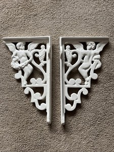 Wall Brackets White Antique Cast Iron Cherubs For WC Or Shelves - VGC