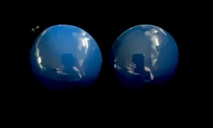 Vintage Navy Blue Acrylic Dome Button Pierced Earrings 1” D