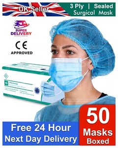 50 Pcs Non Surgical Face Masks Boxed HYGIENICALLY SEALED Disposable 3PLY SOFT UK