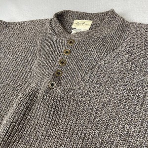 Vintage Eddie Bauer Sweater Mens Large Cable Knit Henley Grandad Collar Popover