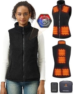 GOTOBI Women's Fuzzy Fleece Heated Vest, 9 Heating Zones, Size Small, Black