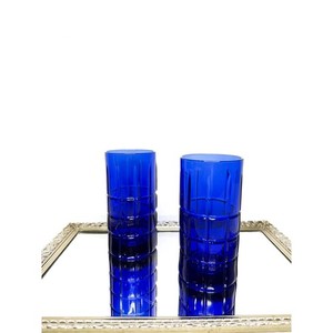 Anchor Hocking 6" Tall Cobalt Blue Glass Tumblers In Manchester/Tartan pattern