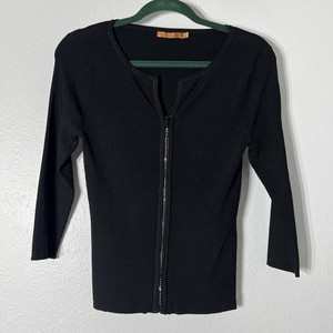 Belldini Shirt Womens S Black Ribbed Knit McBling Zipper Classy Vintage Staple