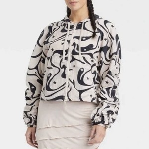 Joylab Jacket Womens M Cream Hooded Cropped Nylon Pockets Windbreaker Activewear