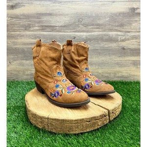 Mudd Women - Size 9M - Tan Floral Faux Suede Ankle Boots 73277