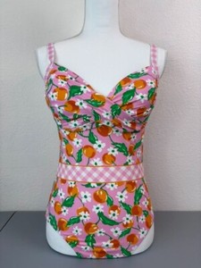 Draper James Lands' End womens 8 pink orange print sweetheart one piece swimsuit