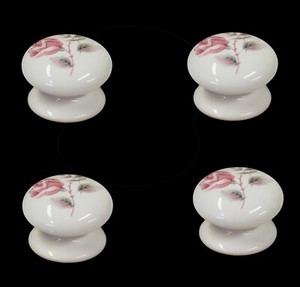 4 x White Porcelain Ceramic Cupboard Cabinet Door Knobs June Rose Design 35mm