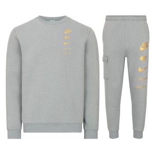 Nike Sportswear Mens Standard Issue Cotton Fleece Crew Neck Tracksuit Set Grey