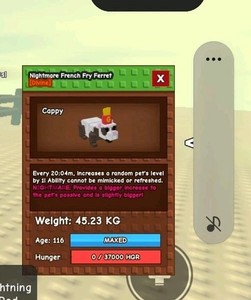 Age 100 Nightmare French Frie Ferret Grow a Garden Roblox