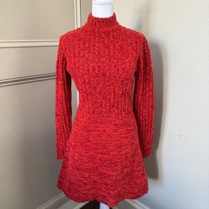 Vintage Roncelli Wool Boucle Knit Space Dyed Red/Orange Sweater Dress 1970s
