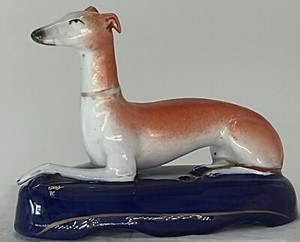 Vintage Staffordshire Whippet on Cobalt Blue Base Inkwell Made in England