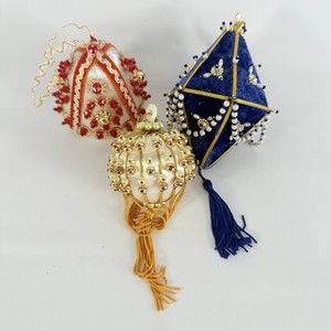 Vintage Handmade Satin Christmas Ornament Push Pin Ball Beaded Beads Lot 3 E