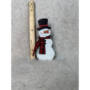 Rustic Wood Snowman Black Top Hat Buffalo Plaid Scarf Christmas Decor