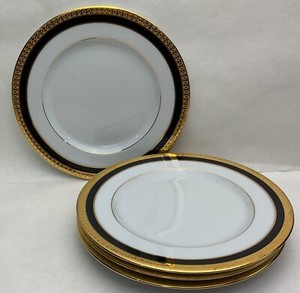 4 Haviland Symphonie Symphony Bread and Butter Plates Black And Gold EXCELENT