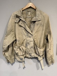 Free People Distressed Utility Jacket With Pockets Button & Snap Closure Sz Sm