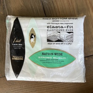 Vintage Pennys Nation Wide Fitted Twin Bottom Sheet White Cotton Muslin NOS