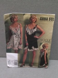 VOGUE 1104 UNCUT 1990s Miss Size 6- 8-10-12 ANNA SUI SHOULDER TIE FLOUNCE DRESS