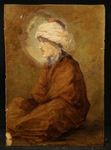 Orientalism Antique Oil Painting on Panel Muslim Man Seated Realistic Style