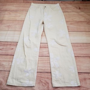 Shein Floral Print Pants Womens Medium Cream Wide Leg Jeans Flower Power Y2K